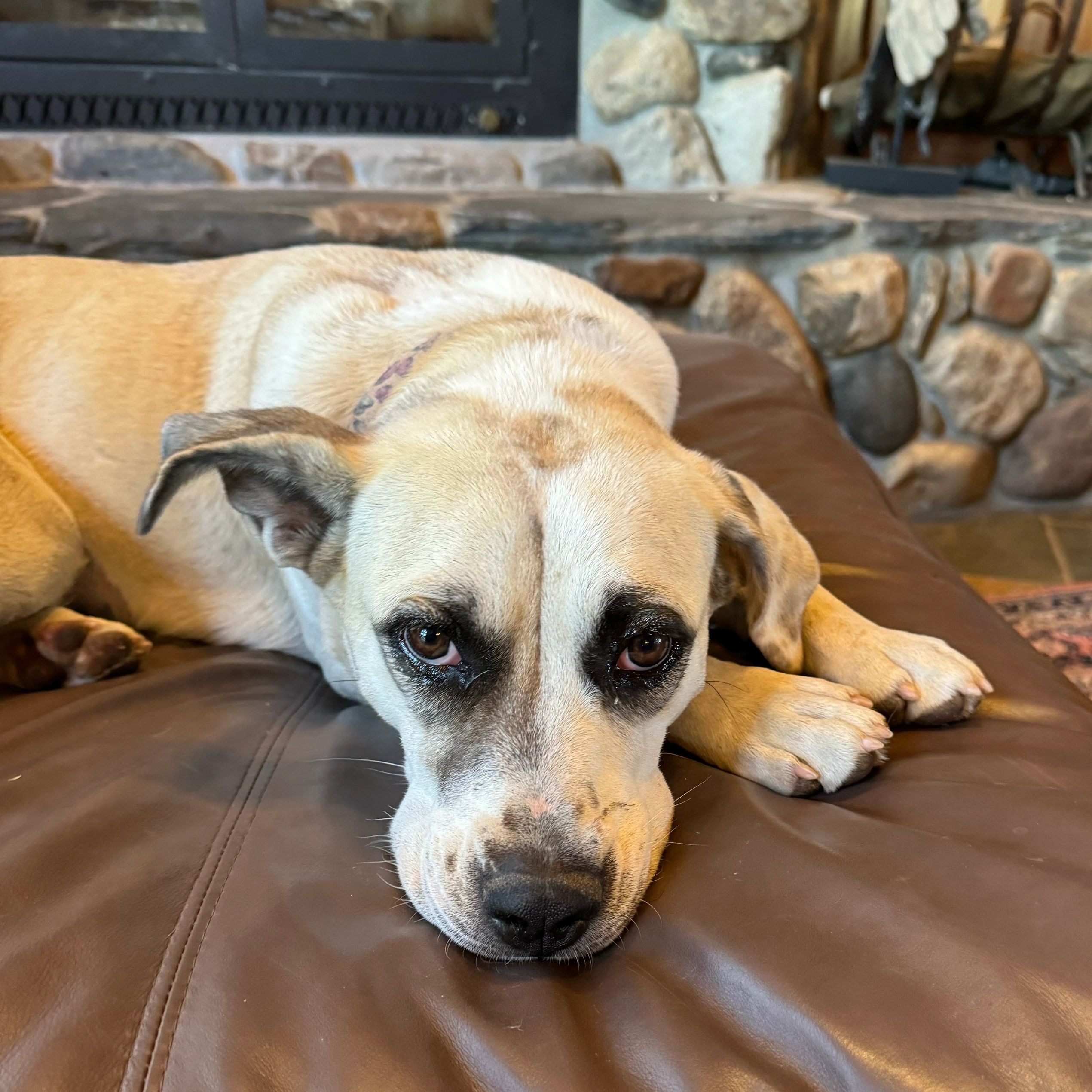 4 yr old Bird was watchdog in the grape vineyard in Madera until it was closed down. He’s an 85 lb love bug.