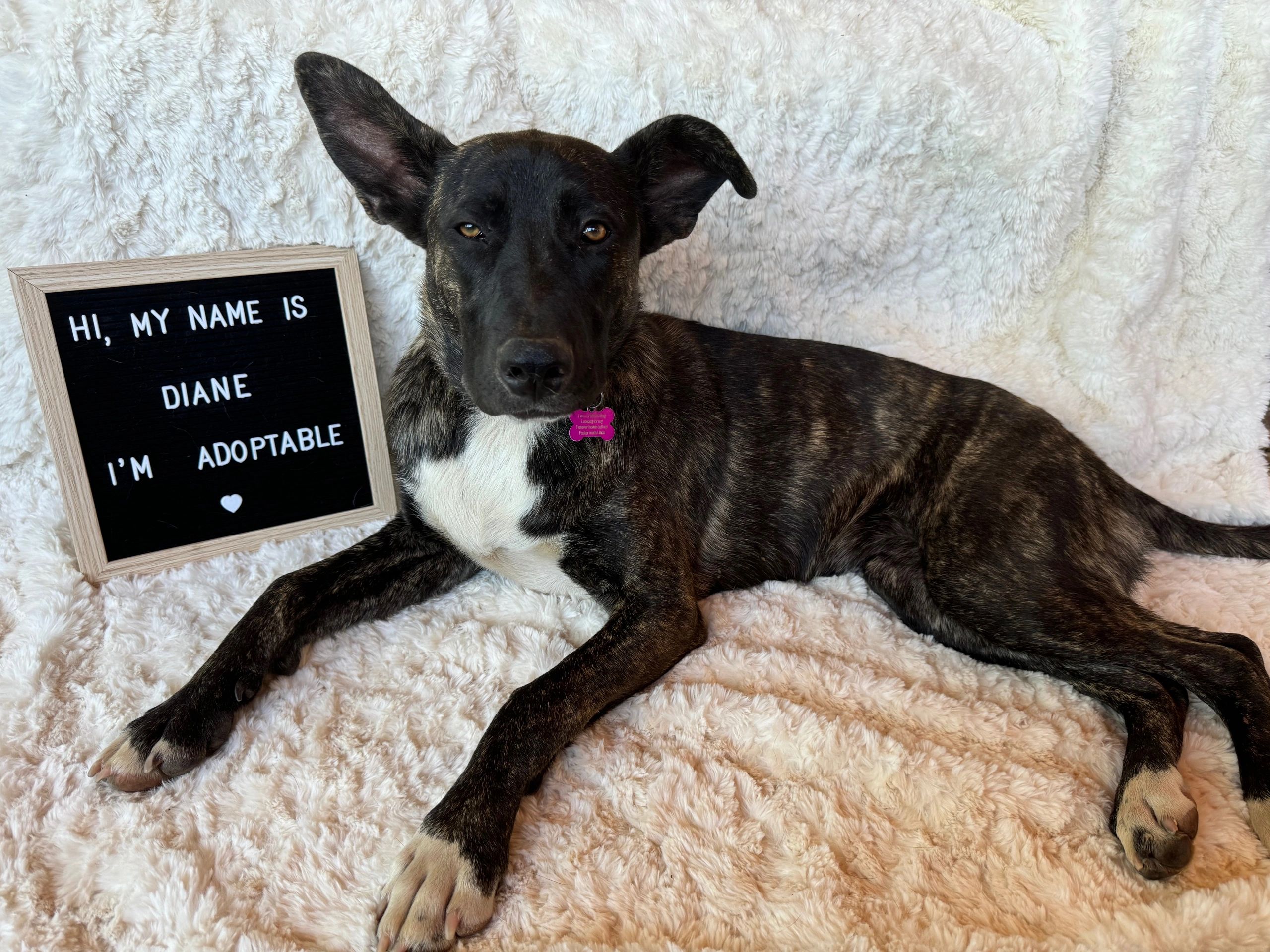 Diane is great with children! What I love about her? She can scare strangers, because of her look. That can be a positive when protecting your property. Bware of dog! Let’s hope they don’t try and pat her though, cause then she gets wiggly and mushy. She just loves being loved. She’s very loyal and looking for her forever home. Being the 1st Rescue a year ago-it’s been sad for her watching her friends leave